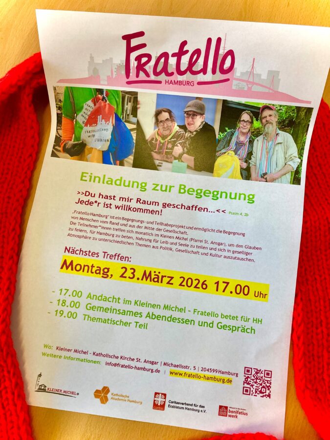 Den Welttag der Armen feiert Fratello immer zusammen mit der Kirchengemeinde vom Kleinen Michel. Erzbischof Heße wird dabei sein und viele Menschen von Fratello und der Gemeinde und aus ganz Hamburg. Wir freuen uns darauf.